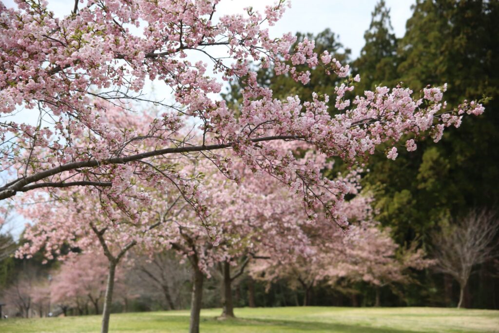 原っぱエリアの桜、見頃を迎えます