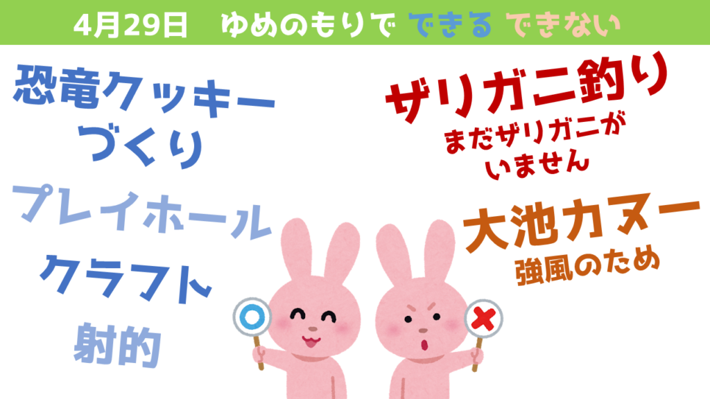 4/29(火祝)大池カヌーとザリガニ釣りができません