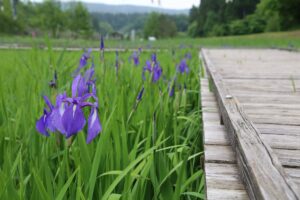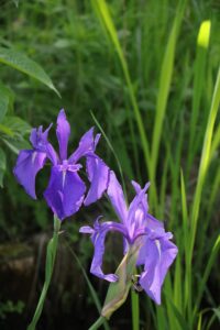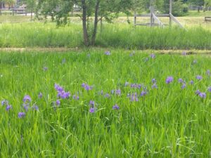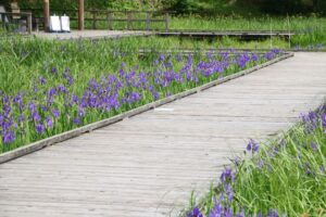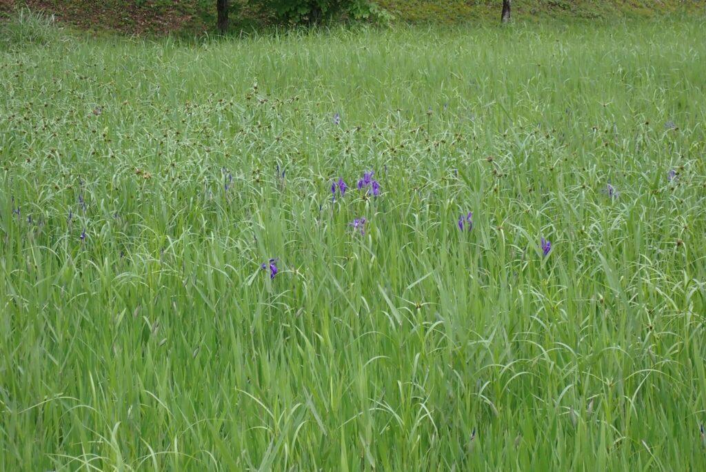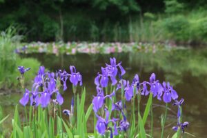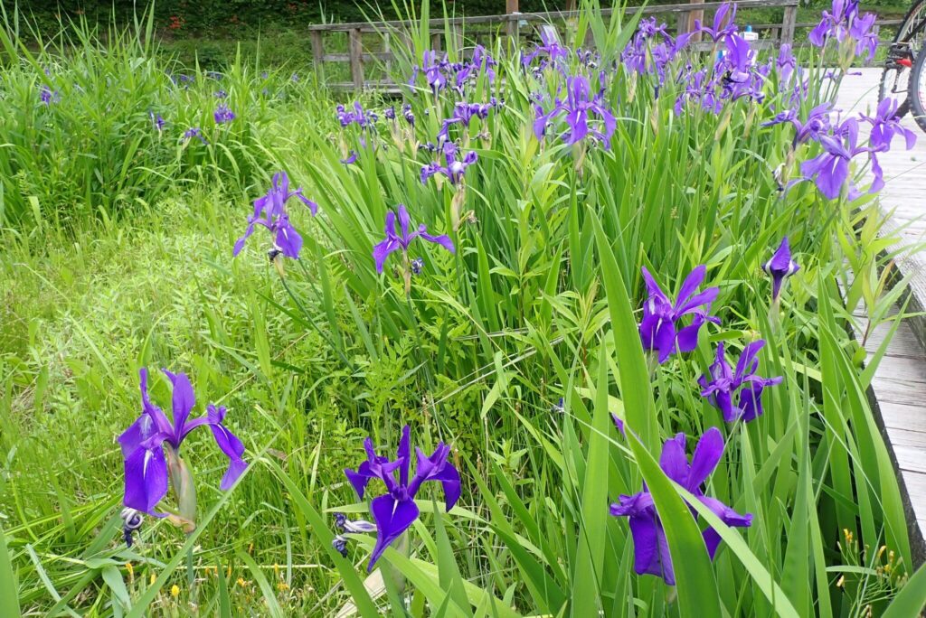水辺のあちらこちらでカキツバタの紫色を見ることができます。