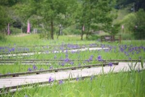 カキツバタは見納めとなっておりますが、花ひとつひとつはまだ楽しめそうです。本日は天気も良く風が心地よいです。お散歩にも丁度良い気候になっています。