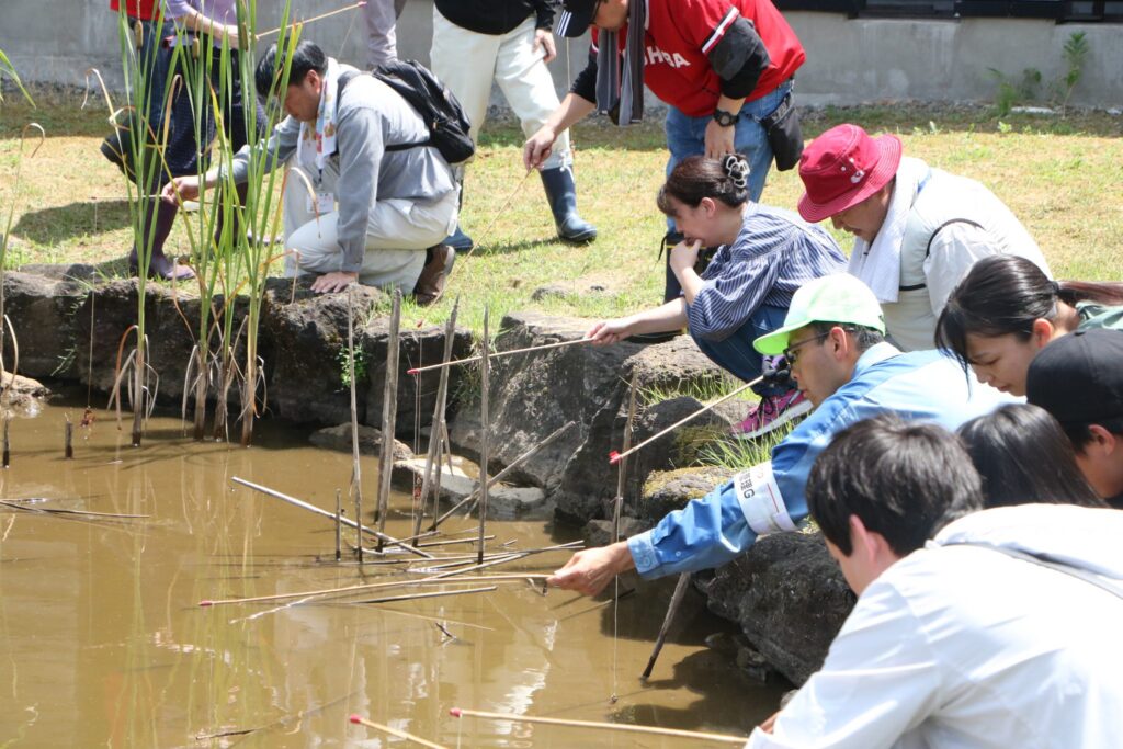 作業後は大人も白熱!ザリガニ釣り大会