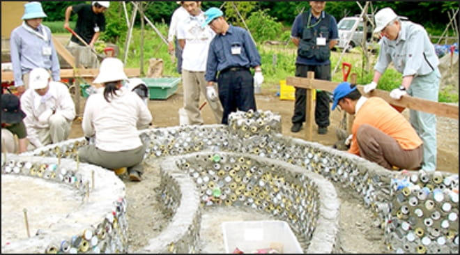 ●手作り足湯を作るためスチール缶6千個集める