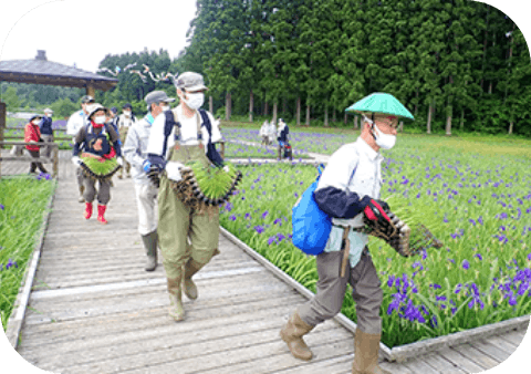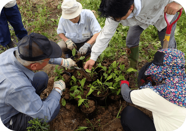 開園前から続くボランティアによる株分け・草刈り・育成活動は、毎年数百人の協力で成り立っています。中心となる「里山環境づくりネットワーク」は、暑さやぬかるみにも負けず、年間を通じて丁寧に手入れを行っています。