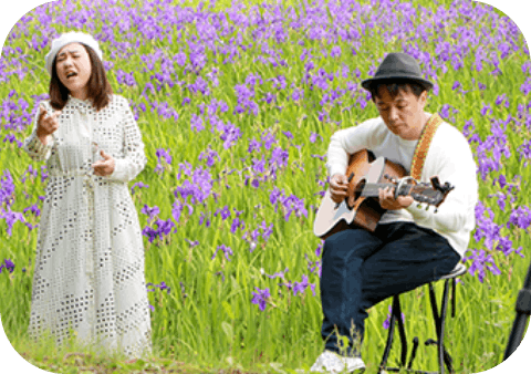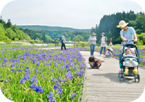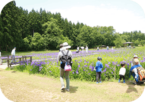 かつて田畑だった水辺に、市民の手で移植・育成されたカキツバタ。美しさとストーリーをあわせ持つこの花は、いまや来園者2.5万人を超える名所に育ちました。