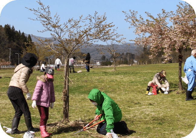 ●原っぱエリアのサクラの木を整備し、ソメイヨシノが咲く前にお花見ができるスポットをつくっています。