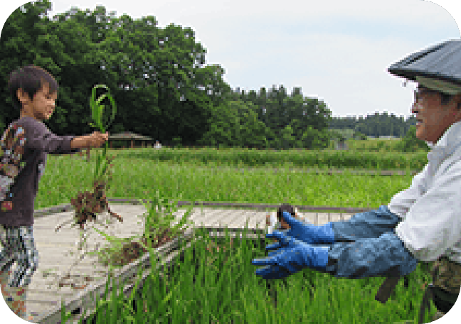 普段食べているお米がどこからやってくるか? 知識としてはわかっていても家族で体験する機会は少ないのでは? 稲の植え方〜ハザ掛け(天日干し)まで環境農園地元連絡会の皆さんが丁寧にサポートしてくれます。 泥の感触や田んぼに集う生き物の存在。そして「お米がどこからやってくるのか」を体で感じてみませんか? 実際田んぼに入った後には、きっと田んぼのある風景も変わって見えるはず。 休憩時ぽっと聞ける小話も面白いのでおススメですよ。ぜひ色々聞いてみて下さいね。 5月に田植えのイベント、9月に稲刈りイベントを実施しています。