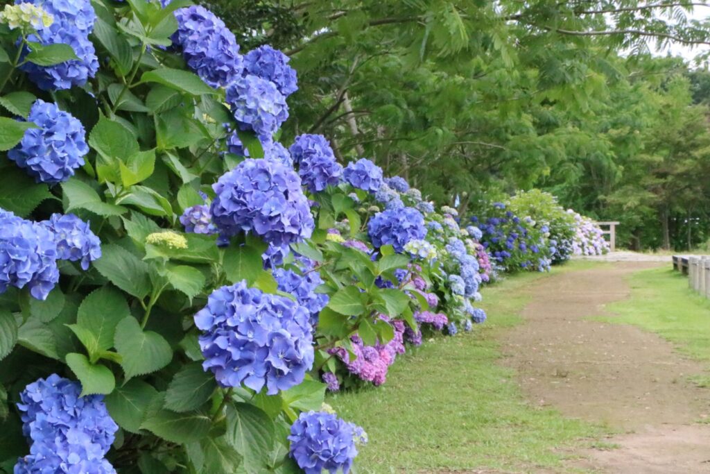 持ち物 切ったアジサイを持ち帰る袋など、園芸用の手袋、飲み物、帽子、 動きやすい服装、剪定ばさみ(ない場合は公園のものが使えます)