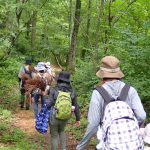 *雨での森を歩きます。大きなビニール袋の中に持ち物を入れてリュックに入れたり、ザックカバーがあると便利です