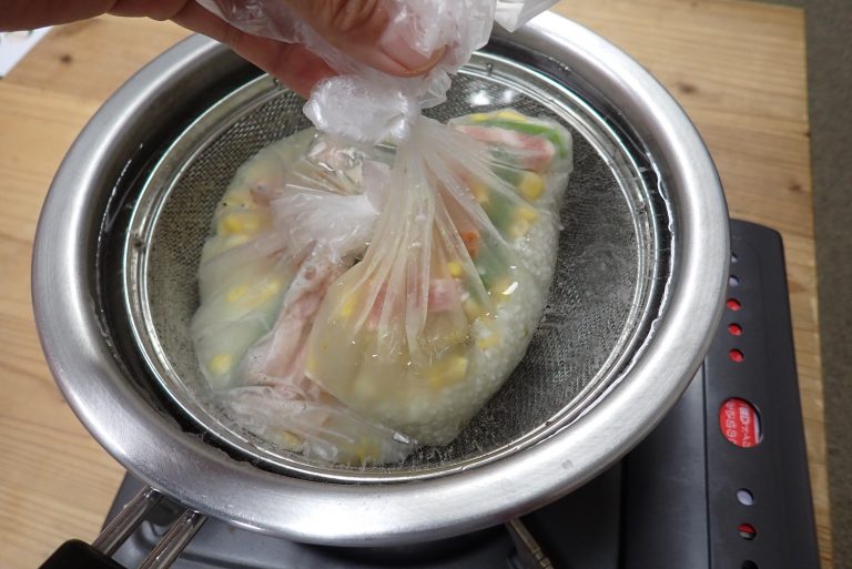 「災害時に役立つアイラップ調理は便利だと聞いたことはあるけど作ったことはない!」という方も多いです。ご家庭で簡単にできるアイラップ炊きご飯(カレーピラフ)と味噌玉づくりでたのしみながらアウトドア防災!