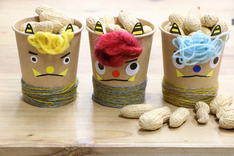 ご飯の前に鬼が登場?!豆をぶつけて家族の健康を祈ります。