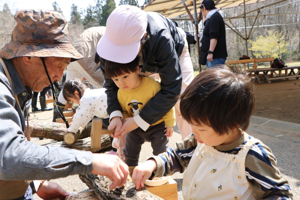 みんなでシイタケとナメコのコマうちにもチャレンジ!