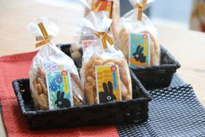 夢の森公園オリジナルパッケージの網代焼やおかき。