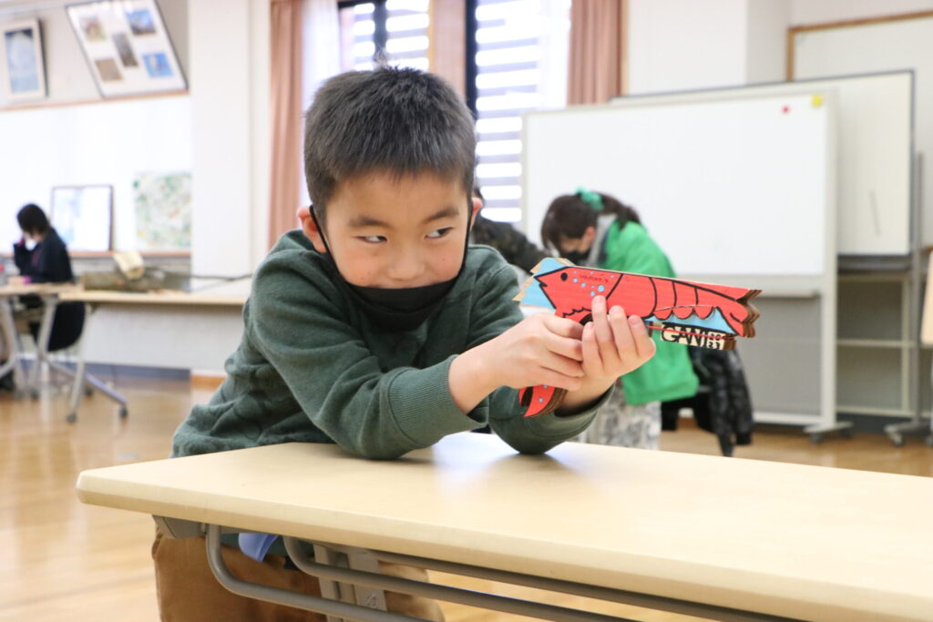 ザリガニをモチーフにした3連発式のゴム鉄砲。やすりで削って色を付けて自分だけのオリジナルザリガニ鉄砲を作ろう!威力も抜群です♪