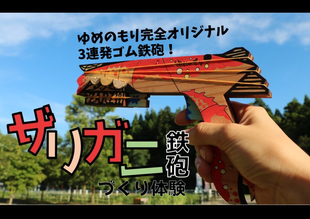 地元の木材店とコラボして一から作成したオリジナルの3連発式ゴム鉄砲。自分だけのオリジナルザリガニ鉄砲を作ろう!参加者に…