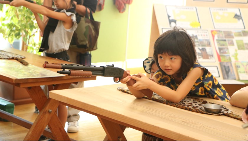 コルクの銃を使って射的体験。君はいくつあてられるかな。ケモノ的を見事倒した方にはゆめのもりのオリジナルグッズがあたりま…